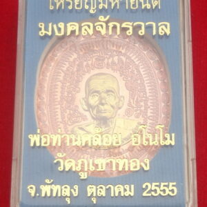 เหรียญมหายันต์ มงคลจักรวาล ปี 55 เนื้อทองแดงหน้ากากทองฝาบาตร พ่อท่านคล้อย วัดภูเขาทอง จ.พัทลุง