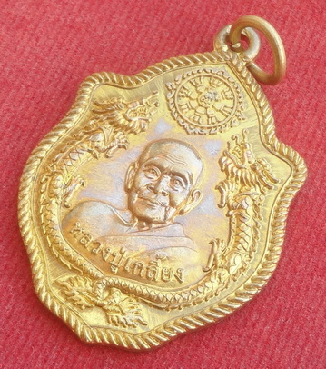 เหรียญมังกรคู่หลังนารายณ์ตรึงไตรภพ ปี 56 เนื้อทองฝาบาตร หลวงปู่เกลี้ยง วัดโนนแกด จ.ศรีสะเกษ