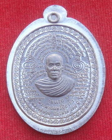 เหรียญรุ่นแรก แพะคู่มิตรชนะจิตคน หลวงปู่อาด วัดบุญสัมพันธ์ จ.ชลบุรี ปลุกเสกเดี่ยว 77 วัน พิธีใหญ่ วันวิสาขบูชาราชาฤกษ์ ที่ 14 พฤษภาคม 2556 เนื้อตะกั่วรองพิมพ์ไม่ตัดปีก หมายเลข ๑๖๕ (แยกชุดกรรมการ) ขนาดเหรียญรวมห่วงตัน 3.4 x 4.7 ซ.ม. จำนวนสร้าง 377 ชุด (1 ชุด มีเหรียญเนื้อนวะหน้ากากเงิน 1 เหรียญ เนื้อตะกั่วรองพิมพ์ไม่ตัดปีก 3 เหรียญ เนื้อทองฝาบาตร 3 เหรียญ ทั้งชุดตอกโค๊ตและหมายเลขเดียวกัน ๑๖๕)