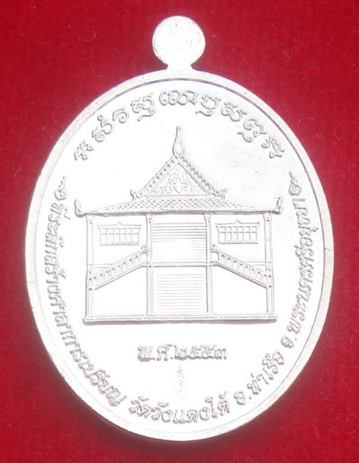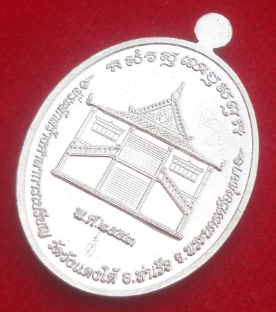 เหรียญรูปไข่รุ่นสร้างศาลาการเปรียญ ปี 53 เนื้อเงินหน้าทองคำ หลวงพ่อเอื้อน วัดวังแดงใต้ จ.อยุธยา
