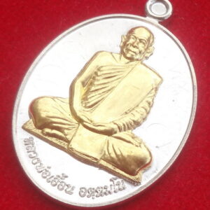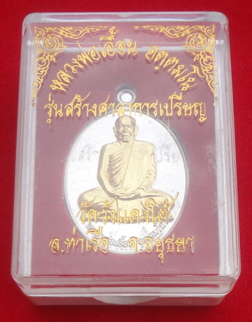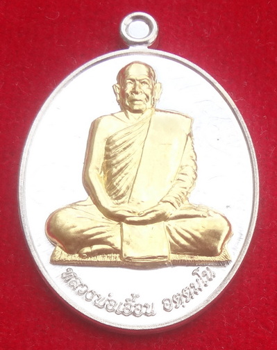 เหรียญรูปไข่รุ่นสร้างศาลาการเปรียญ ปี 53 เนื้อกะไหล่ทององค์เงิน หลวงพ่อเอื้อน วัดวังแดงใต้ จ.อยุธยา