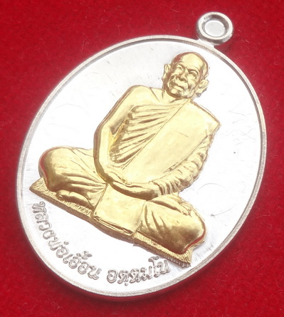 เหรียญรูปไข่รุ่นสร้างศาลาการเปรียญ หลวงพ่อเอื้อน วัดวังแดงใต้ จ.พระนครศรีอยุธยา ปี พ.ศ.2553 เหรียญรูปไข่นั่งเต็มองค์ เนื้อเงินหน้ากากทองคำ ตอกโค๊ต ขนาดเหรียญรวมห่วงตัน 2.4 x 3.5 ซ.ม. จำนวนสร้าง 99 เหรียญ (หลวงพ่อเมตตาจารให้แล้วครับ)