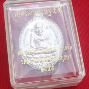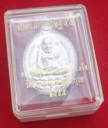เหรียญหลวงปู่ทวดเปิดโลกเศรษฐี ปี 2555 หลวงปู่ดู่ วัดสะแก จ.พระนครศรีอยุธยา วันเสาร์ที่ 20 ตุลาคม พ.ศ.2555 (ขึ้น 5 ค่ำ เดือน 11) เหรียญรูปไข่ เนื้อเงิน ยิงโค๊ตและหมาย ๖๐๖ ขนาดเหรียญรวมห่วงตัน 2.6 x 3.7 ซ.ม. จำนวนสร้าง 999 เหรียญ