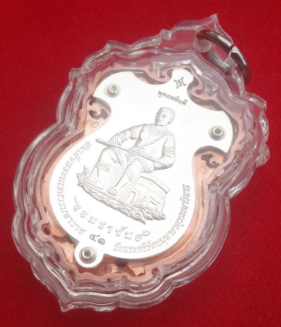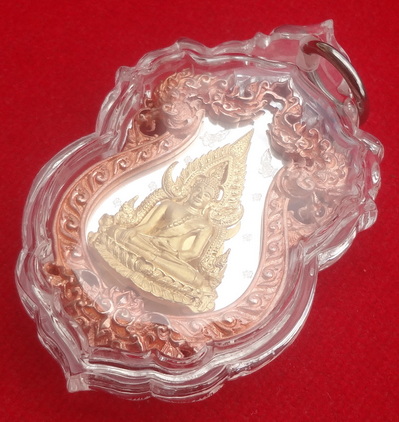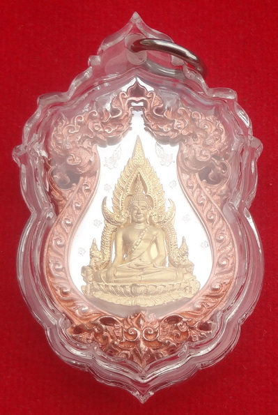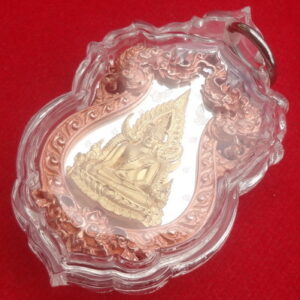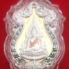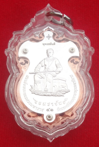 เหรียญหล่อฉลุพระพุทธชินราช รุ่นจอมราชันย์ ปี พ.ศ.2555 วัดพระศรีรัตนมหาธาตุวรมหาวิหาร (วัดใหญ่) จ.พิษณุโลก เนื้อเงินชุบ 3 กษัตริย์ องค์พระชุบทอง ยิงโค๊ต ยิงพุทธชยันตี และหมายเลข ๔๑ เลี่ยมกันน้ำให้แล้ว พร้อมกล่องเดิม จำนวนสร้าง 5,555 เหรียญ