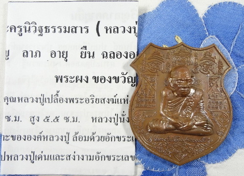 เหรียญอาร์มเจริญลาภอายุยืน 9 รอบ หลวงปู่เปลื้อง วัดลาดยาว จ.นครสวรรค์ ที่ระลึกอายุครบ 9 รอบ 108 ปี พ.ศ.2552 เนื้อโลหะผสม ตอกโค๊ตและหมายเลข _ _ _ จำนวนสร้าง 3,108 เหรียญ