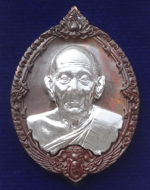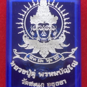 เหรียญเปิดโลกหลวงปู่ดู่ หลังพระพรหม รุ่นลาภผลพูนทวี หลวงปู่ดู่ วัดสะแก จ.พระนครศรีอยุธยา พิธีพุทธาภิเษก วันอาทิตย์ที่ 30 มิถุนายน พ.ศ.2562 วัดธรรมนิยม เนื้อทองแดงชนวนมวลสาร หน้ากากเงิน ตอกโค๊ตและหมายเลข ๒๙๗๐๑ ขนาดเหรียญ 2.8 x 4.0 ซ.ม. จำนวนสร้าง 150 เหรียญ