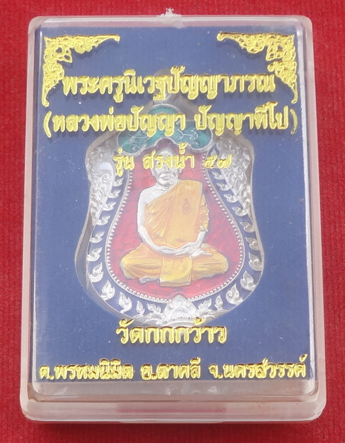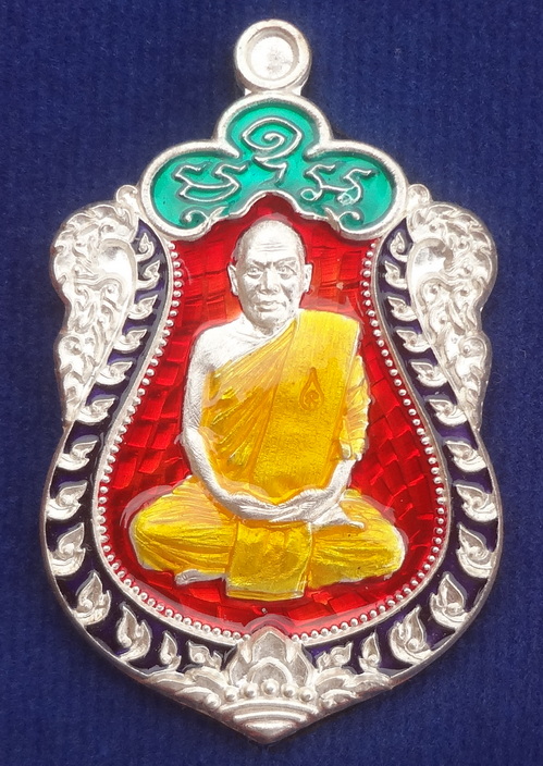 เหรียญเสมาสรงน้ำ หลวงพ่อปัญญา วัดกกกว้าว อ.ตาคลี จ.นครสวรรค์ ปี พ.ศ.2557 เนื้อเงินลงยาราชาวดี 4 สี ตอกโค๊ตและหมายเลข ๙๒ ขนาดเหรียญรวมห่วงตัน 2.7 x 4.3 ซ.ม. จำนวนสร้าง 99 เหรียญ