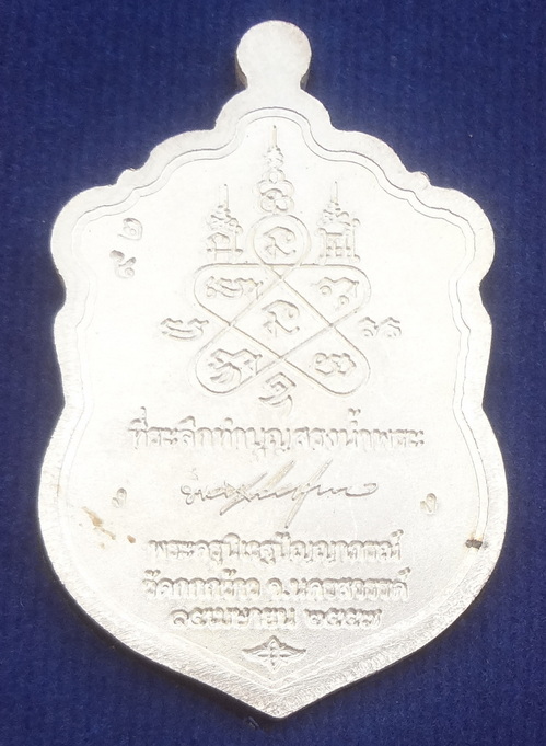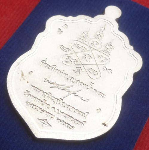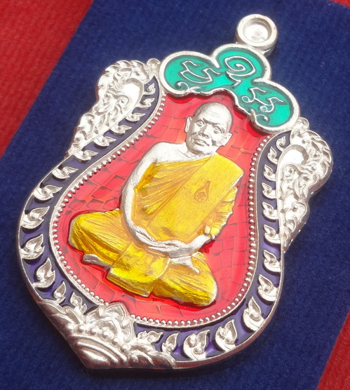 เหรียญเสมาสรงน้ำ ปี 57 เนื้อเงินลงยาราชาวดี 4 สี หมายเลข ๙๒ หลวงพ่อปัญญญา วัดกกกว้าว จ.นครสวรรค์
