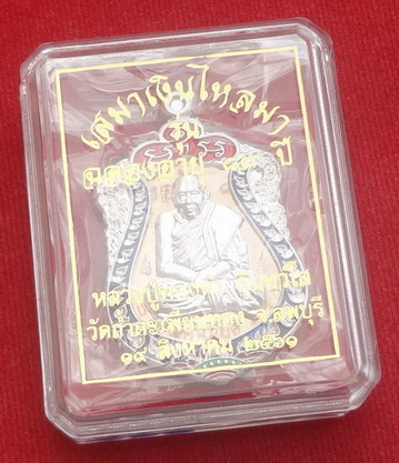 เหรียญเสมาเงินไหลมา หลวงพ่อทองดำ วัดถ้ำตะเพียนทอง จ.ลพบุรี ฉลองอายุ 87 ปี วันที่ 19 สิงหาคม พ.ศ.2561 เนื้อนวโลหะ หน้ากากเงิน ขอบเงินลงยา ตอกโค๊ตและหมายเลข ๒๓๙ ขนาดเหรียญรวมห่วงตัน 2.8 x 4.4 ซ.ม. จำนวนสร้าง 399 เหรียญ