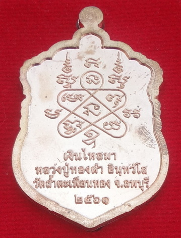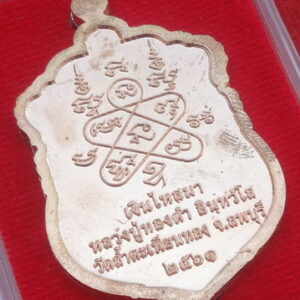 เหรียญเสมาเงินไหลมา ปี 61 เนื้อเงินลงยาสีแดง หมายเลข ๔๘ หลวงพ่อทองดำ วัดถ้ำตะเพียนทอง จ.ลพบุรี