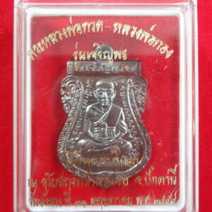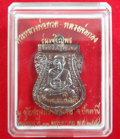 เหรียญเสมาเจริญพรบน หลวงปู่ทวดหน้าเลื่อน หลังหลวงพ่อทอง รุ่นเจริญพร หลวงพ่อทอง วัดสำเภาเชย จ.ปัตตานี รุ่นสุดท้าย 31 พฤษภาคม พ.ศ.2554 เนื้อทองแดงนอกรมดำ ตอกโค๊ต “เลื่อน” โค๊ตและหมายเลข _ _ _ ขนาดเหรียญ 2 X 3.1 cm. จำนวนสร้าง 19,999 เหรียญ