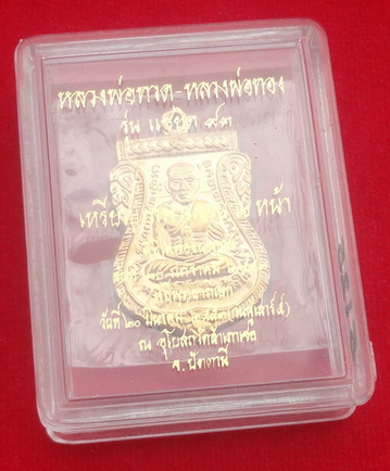 เหรียญเสมาเลื่อน 2 หน้า (เหรียญเสมาหลวงปู่ทวดหน้าเลื่อน หลังหลวงพ่อทองหน้าเลื่อน พิมพ์หน้าเลื่อนใหญ่ 2 หน้า) หลวงพ่อทอง วัดสำเภาเชย จ.ปัตตานี รุ่นแซยิด 93 เสาร์ 5 วันที่ 20 มีนาคม พ.ศ.2553 เนื้ออัลปาก้าผิวเปียกทอง ตอกโค๊ตและหมายเลข _ _ _ ขนาดเหรียญรวมห่วงเจาะ 2.3 x 3.5 cm. จำนวนสร้าง 5,999 เหรียญ