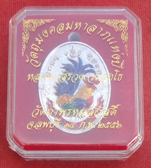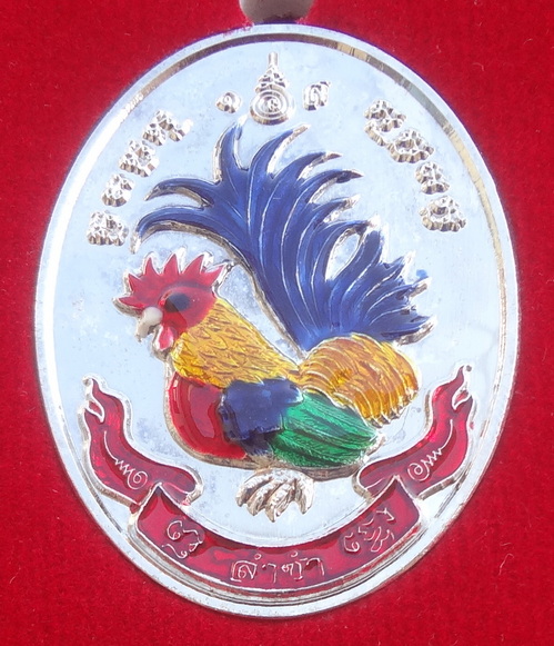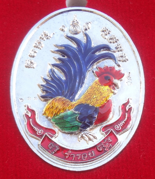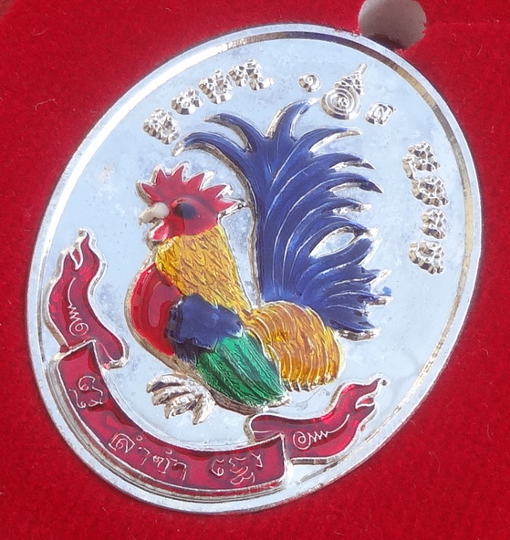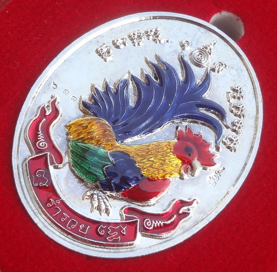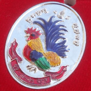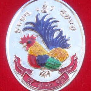 เหรียญไก่ฟ้าคู่ ร่ำรวย – ล่ำซำ ปี 56 เนื้อชุบเงินลงยาสี หลวงปู่สรวง วัดถ้ำพรหมสวัสดิ์ จ.ลพบุรี