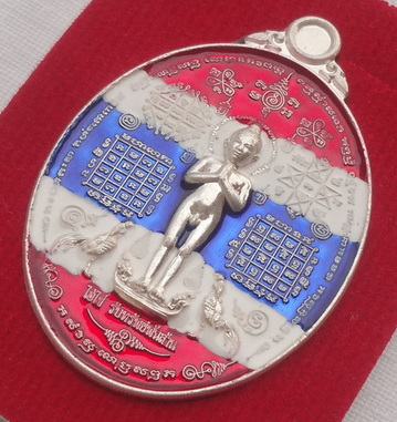 เหรียญไอ้ไข่ รับทรัพย์พันล้าน ปี 63 เนื้อสัตตะ ลงยาแดง หมายเลข ๒๖๕ วัดชายเขา จ.นครศรีธรรมราช