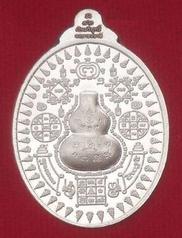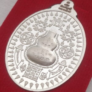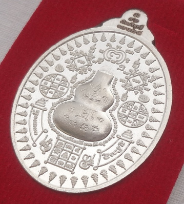 เหรียญไอ้ไข่ รุ่นรับทรัพย์พันล้าน วัดชายเขา จ.นครศรีธรรมราช พุทธาภิเษก วาระแรก ณ ถ้ำฉัททันต์บรรพต วัดเขาอ้อ จ.พัทลุง วาระสอง วัดดีหลวง จ.สงขลา วาระสาม วัดชายเขา จ.นครศรีธรรมราช ปลุกเสก 25 กรกฎาคม พ.ศ.2563 เนื้อเงิน ลงยาธงชาติ หลังยันต์น้ำเต้าเรียกทรัพย์ ยิงโค๊ต หมายเลข ๔๓ ขนาดเหรียญรวมห่วงตัน 2.6 x 3.8 ซ.ม.