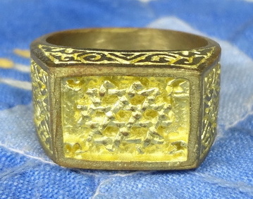 แหวนตอกถักรุ่น 2 วัดขุนพรหม ต.สำเภาร่ม จ.พระนครศรีอยุธยา ปี พ.ศ.2549 เนื้อทองเหลือง ขนาด 1.8 cm.
